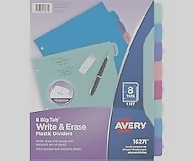 Avery Write & Erase Dividers for 3 Ring Binders, 8 Tabs per Set, Multicolor Big Tabs, Pastels, Binder Dividers Great for Orga
