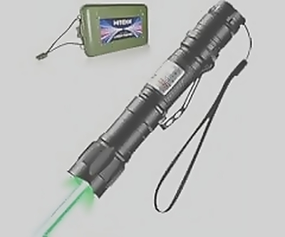 High power tactical green laser pointer with rechargeable battery and single press on/off functionality.