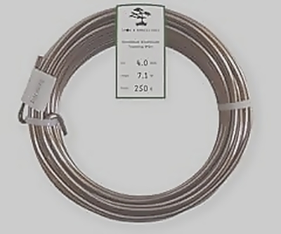 4.0mm Anodized Aluminum Bonsai Training Wire, 250g roll, 23 feet long, available in brown.