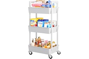 The EaseSky 3-Tier Rolling Cart is a versatile storage solution designed for easy organization in any space. Featuring three spacious plastic shelves, this cart is perfect for storing and transporting items around your home or office. It includes a convenient drawer for additional storage needs and lockable wheels to ensure stability when needed. The waterproof design makes it suitable for various environments, including kitchens, bathrooms, and craft rooms. Its easy assembly allows you to set it up quickly and start using it right away.