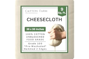 Cotton Farm Pre-Cut Cheese Cloths are high-quality, versatile kitchen essentials designed for easy straining and filtering. Measuring 18 x 18 inches, these Grade 100 cheesecloths feature overlocked edges for durability and are ready to use straight out of the package. Ideal for making cheese, yogurt, and nut milk, as well as for cooking, baking, and crafting, these muslin cheesecloths are a must-have for both professional chefs and home cooks alike.
