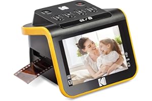 The KODAK SLIDE N SCAN Film and Slide Scanner is designed to effortlessly digitize your cherished memories stored in old film negatives and slides. Supporting 35mm, 126, and 110 film formats, this versatile scanner converts both color and black & white negatives and slides into high-quality digital images. Its standout feature is the large 5-inch LCD screen, providing clear and vibrant previews of your photos, allowing for easy viewing and editing directly on the device. The scanner boasts a 14-megapixel CMOS sensor, with the option to interpolate up to 22 megapixels, ensuring detailed and sharp digital reproductions of your originals. With user-friendly controls, you can adjust color balance, brightness, and rotate images before saving them directly to an SD card (not included). The quick-feed tray system streamlines the scanning process, making it efficient to convert multiple slides or negatives in one session. Additionally, the device offers HDMI and USB outputs, allowing you to connect it to a TV or computer for larger displays or file transfers. Compact and easy to use, the KODAK SLIDE N SCAN is an ideal solution for preserving and sharing your precious memories in digital format.