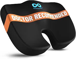 The Everlasting Comfort Doctor Recommended Memory Foam Seat Cushion is designed to provide optimal support for your back and tailbone, making it an essential accessory for office chairs and cars. This ergonomic cushion helps relieve pain associated with sciatica, ensuring comfort during long hours of sitting. The high-quality memory foam adapts to your body\'s shape, promoting better posture and reducing pressure on your spine. Ideal for anyone experiencing discomfort from prolonged sitting, this large black cushion fits most chairs and is easy to transport.