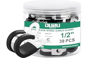 The OURU 1/2-Inch Stainless Steel Rubber Coated Pipe & Wire Clamps are designed to securely hold pipes and wires in place while preventing damage to the surfaces they touch. This set includes 30 pieces, each featuring a durable rubber coating that provides extra grip and protection, making them ideal for various applications including plumbing, automotive, and electrical work. The clamps are made of high-quality stainless steel, ensuring they are resistant to corrosion and suitable for both indoor and outdoor use.