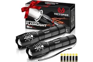 The Victoper LED Flashlight 2 Pack is designed for high performance and versatility. Each flashlight delivers a powerful output with high lumens, ensuring bright illumination in any outdoor setting. With five different lighting modes, including high, medium, low, strobe, and SOS, you can easily adjust the brightness to suit your needs. The zoomable feature allows for a focused beam or wide floodlight, making it perfect for camping, hiking, or emergency situations. Built to withstand the elements, these flashlights are waterproof, ensuring reliability even in wet conditions.