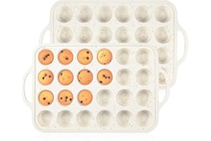This Mini Muffin Pan features a metal reinforced frame that ensures durability and even heat distribution for perfect baking results. It has 24 cups, allowing you to bake multiple mini cupcakes or muffins at once. The nonstick silicone molds make for easy release and cleanup, while the convenient handles provide a secure grip for easy transport. Ideal for baking enthusiasts and professionals alike, this mini muffin pan is a must-have kitchen tool for creating delicious treats.
