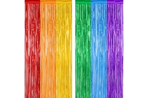 Enhance your party decor with this 2 Pack Rainbow Backdrop Curtains, each measuring 3.28 FT x 7.05 FT. These colorful metallic tinsel backdrop fringe curtains are perfect for a variety of events, including birthdays, weddings, and festive celebrations. Their shimmering design adds a vibrant touch and creates an eye-catching backdrop for photos and celebrations, making your events memorable and visually stunning.