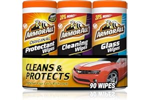 Armor All Protectant, Glass and Cleaning Wipes are designed to clean and protect your car's interior and exterior surfaces. This convenient pack of 3 includes 30 wipes each, perfect for quick clean-ups and maintenance. The wipes help to remove dirt, dust, and grime while providing a protective layer to keep surfaces looking new. Ideal for use on dashboards, windows, and more, these wipes are a must-have for any car enthusiast.