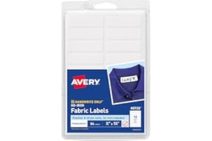 Avery No-Iron Fabric Labels are perfect for labeling clothing, fabric storage, and more. These waterproof labels are designed to withstand the washer and dryer, ensuring that your labels stay intact and legible through multiple washes. Measuring 1/2" x 1-3/4", they are non-printable and come in a pack of 54, making them a convenient option for all your labeling needs. Easy to apply and resistant to fading, these labels help keep your items organized and easily identifiable.