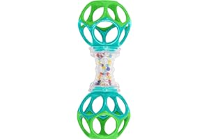 The Bright Starts Oball Shaker Rattle Toy is designed for newborns and up, featuring a unique, flexible design that makes it easy for little hands to grasp. The rattle's soft, textured material and colorful beads inside create an engaging auditory experience while stimulating sensory development. This toy encourages tactile exploration and helps with fine motor skills as babies shake and roll it. Ideal for playtime or on-the-go, it’s lightweight and easy to hold, making it a perfect companion for infants.