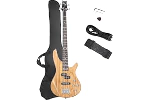 The GLARRY Electric Bass Guitar is a full-size 4-string instrument designed for both beginners and experienced musicians. Its exquisite natural wood finish gives it a stylish appearance, while the powerful sound output ensures a satisfying playing experience. This bass guitar comes complete with a power line, a carrying bag for easy transport, and a wrench tool for maintenance. Whether you're practicing at home or performing on stage, this bass guitar offers quality and durability.