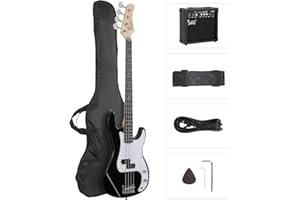 The Glarry Full Size Electric Bass Guitar Beginner Kit is the perfect choice for aspiring musicians. This kit includes a 4-string bass guitar, a powerful amplifier, a cable for easy connectivity, a comfortable strap for playing, a protective bag for transport, and essential accessories. The sleek black finish adds a stylish touch, while the full-size design ensures great playability for both beginners and experienced players. Whether you're practicing at home or performing on stage, this kit provides everything you need to get started on your musical journey.