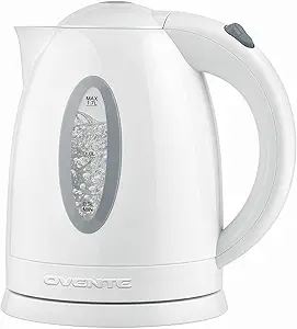 The OVENTE Electric Kettle is a 1.7-liter fast boiling water heater designed for coffee and tea enthusiasts. Featuring a BPA-free construction, it ensures safety and health in your beverage preparation. The kettle comes equipped with a water level gauge for precise measurements, an auto shut-off feature for safety, and boil-dry protection to prevent damage. The indicator light lets you know when the kettle is in operation, while the removable filter makes cleaning easy. Its sleek white design complements any kitchen décor.